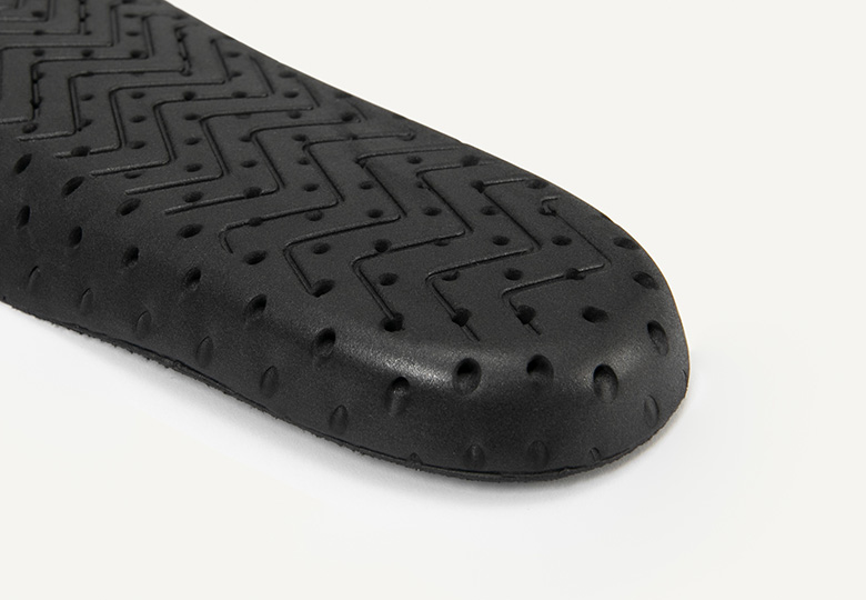 インソールの裏にパンチングを入れることで通気性を高め、靴の中のムレを抑えて快適に過ごすことができます。